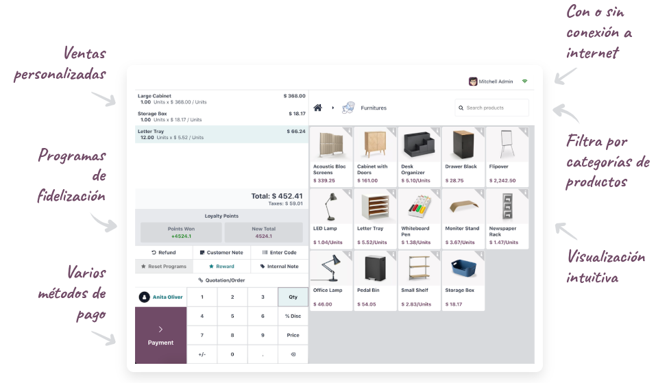 Odoo TPV le permite implementar una solución moderna y escalable con el que puede administrar desde un punto de venta en una pequeña empresa hasta una mediana cadena de tiendas.